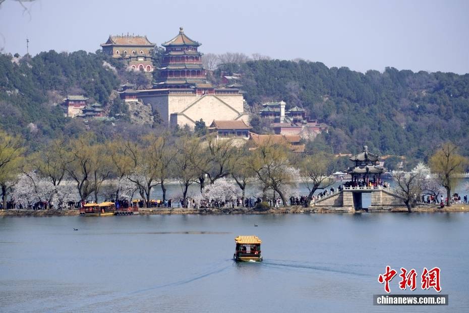3月20日恰(qia)逢春分节气,北(bei)京颐和园春色(se)满园,吸收(shou)浩繁(fan)旅客。知春岛(dao)上(shang)山桃花盛开,从知春亭远眺湖(hu)光山色(se),美没有胜收(shou)。中新社记者 张炜 摄