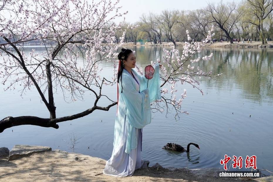 3月20日恰(qia)逢春分节气,北(bei)京颐和园春色(se)满园,吸收(shou)浩繁(fan)旅客。图为旅客穿古装正在山桃花旁照相留念(nian)。中新社记者 张炜 摄