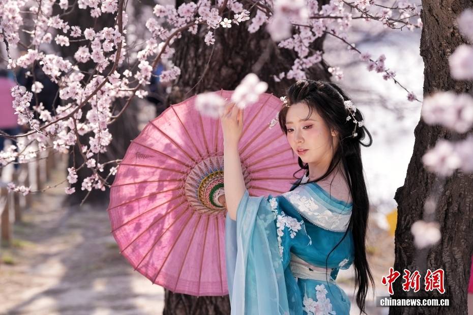3月20日,正值春分节气,北(bei)京颐和园西堤山桃花绽放,吸收(shou)身着古装的市民赏景照相。中新社记者 张祥毅 摄