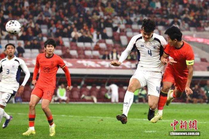3月(yue)25日,2026CFA中(zhong)国之队·西(xi)安国际青年足球锦标赛在西(xi)安举行。在首轮比赛中(zhong),中(zhong)国U23男足2:2战平(ping)泰国U23男足。图为中(zhong)国队7号向余望(右(you)一(yi))头球攻门。 中(zhong)新(xin)社记者(zhe) 张远 摄