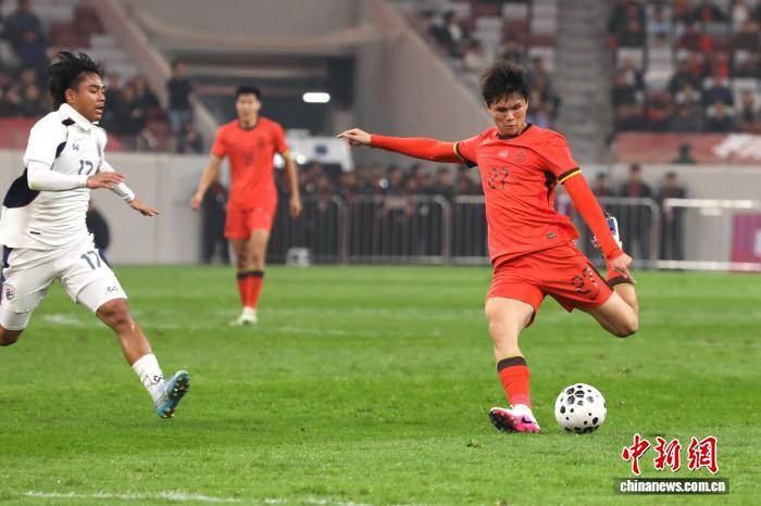 3月(yue)25日,2026CFA中(zhong)国之队·西(xi)安国际青年足球锦标赛在西(xi)安举行。在首轮比赛中(zhong),中(zhong)国U23男足2:2战平(ping)泰国U23男足。图为中(zhong)国队27号陈(chen)泽仕(shi)抬脚射门。 中(zhong)新(xin)社记者(zhe) 张远 摄