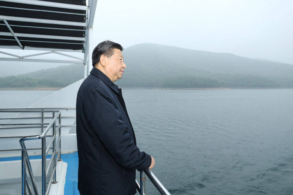 2021年5月13日下午,习近平总书记在河南南阳搭船考察丹江口水库。