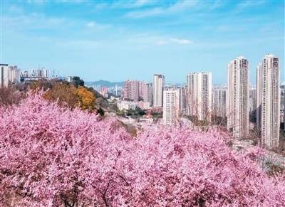 城市高(gao)楼与(yu)半山崖线的繁(fan)花彼此映衬。 王 欢摄