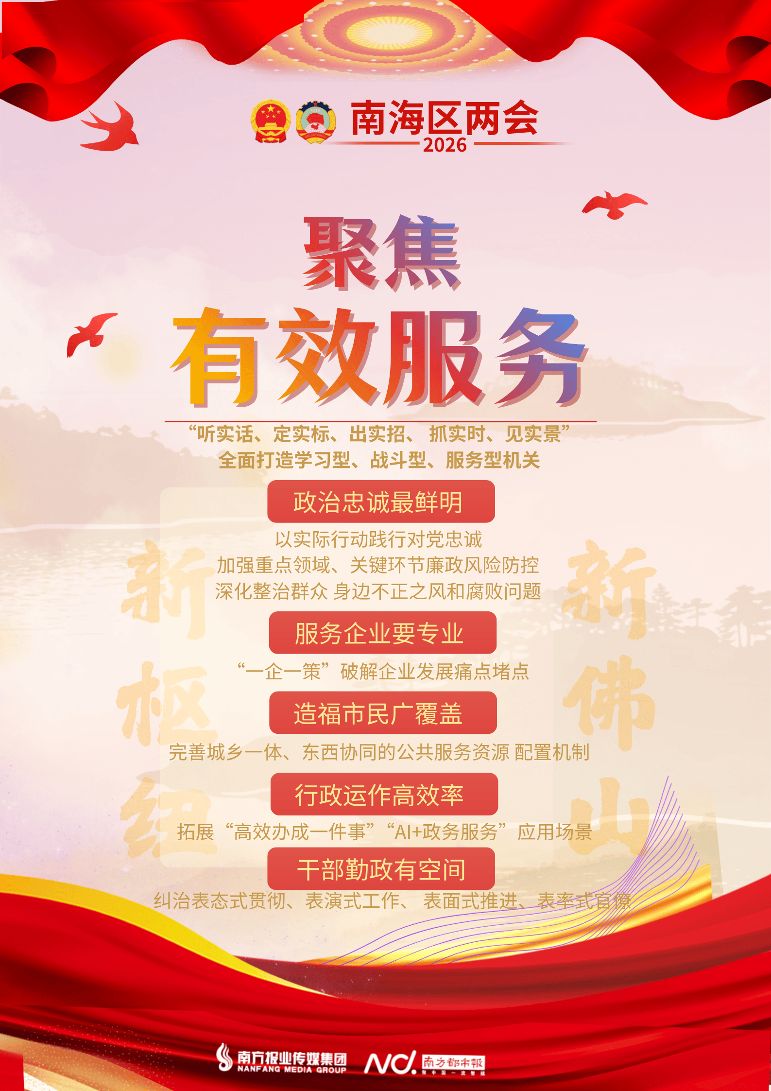 会上,南海区委常(chang)委、副区长黄志(zhi)捷(jie)作政府(fu)工作报(bao)告(gao),系统回顾“十四五”成绩(ji),部(bu)署2026年重点工作。南海首次提出(chu)构建“1215”现代化产业体系,并以(yi)“九个有效”为核心框架,将全年工作深化、细化、量化、具体化、项目化、清单化。