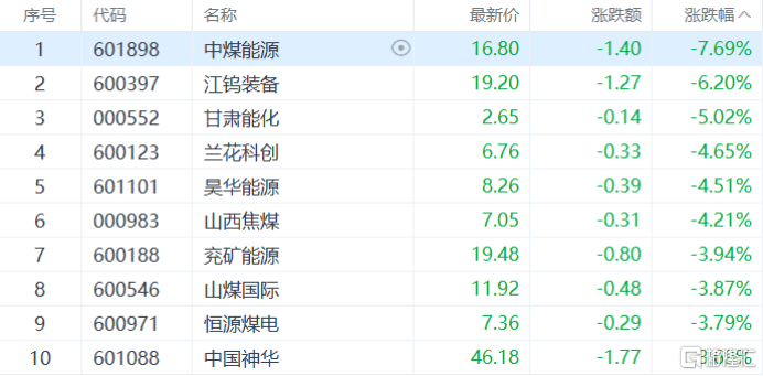 煤炭股走(zou)低,中煤动力跌超7%,江钨装备跌超6%,甘肃能化、兰花科创(chuang)等(deng)多(duo)股跟跌。