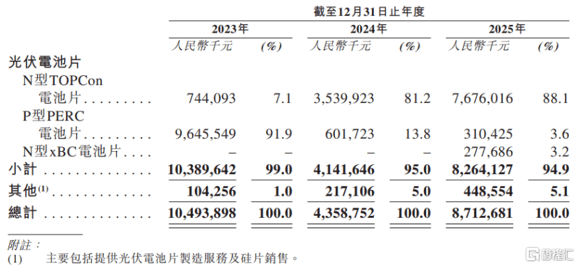 2023年至2025年(简称“报告期”),英发睿能90%以(yi)上的收入来(lai)自光伏电池(shi)片(pian)业务,别(bie)的另有小部分收入来(lai)自提供光伏电池(shi)片(pian)制(zhi)造办事及硅片(pian)贩卖。