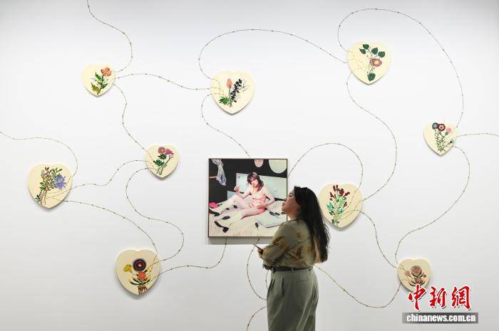图(tu)为现场人士欣赏(shang)艺术品。中新网记者 李志华 摄