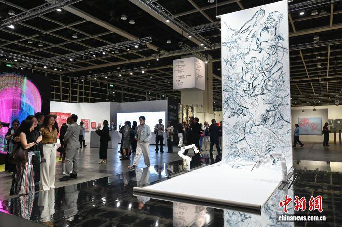 图(tu)为现场人士参(can)观机械(xie)臂绘制的艺术品。中新网记者 李志华 摄