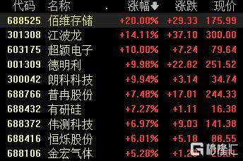 本(ben)日,A股市(shi)场存储芯片板块全线下跌,佰维存储20CM涨停,江波龙涨超(chao)14%,超(chao)颖电子10cm涨停,德(de)明利、朗科(ke)科(ke)技涨超(chao)9%。