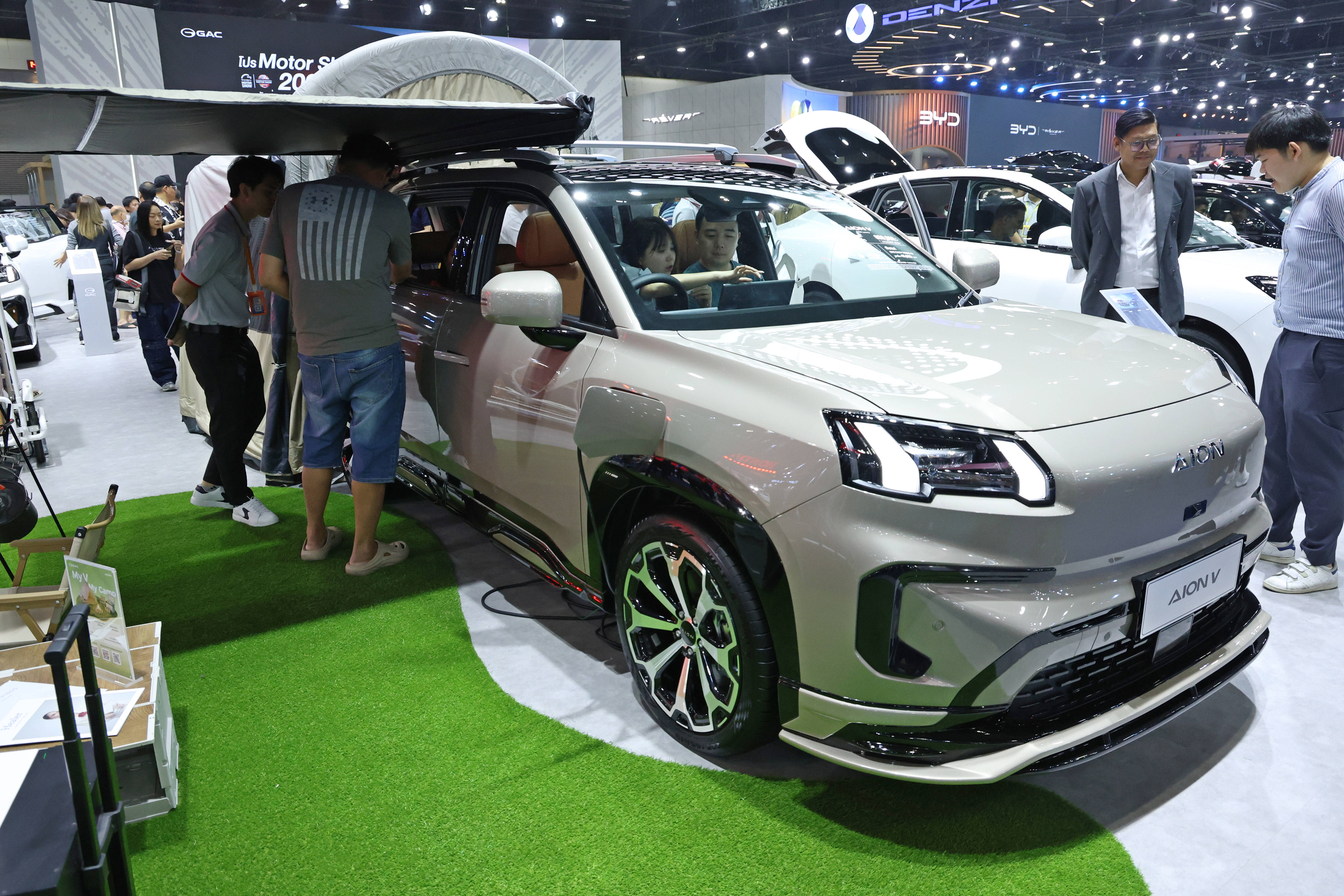 这是3月26日在泰国(guo)曼谷国(guo)际车展上拍摄的埃安V电动车。 新华社记者 孙玮彤 摄