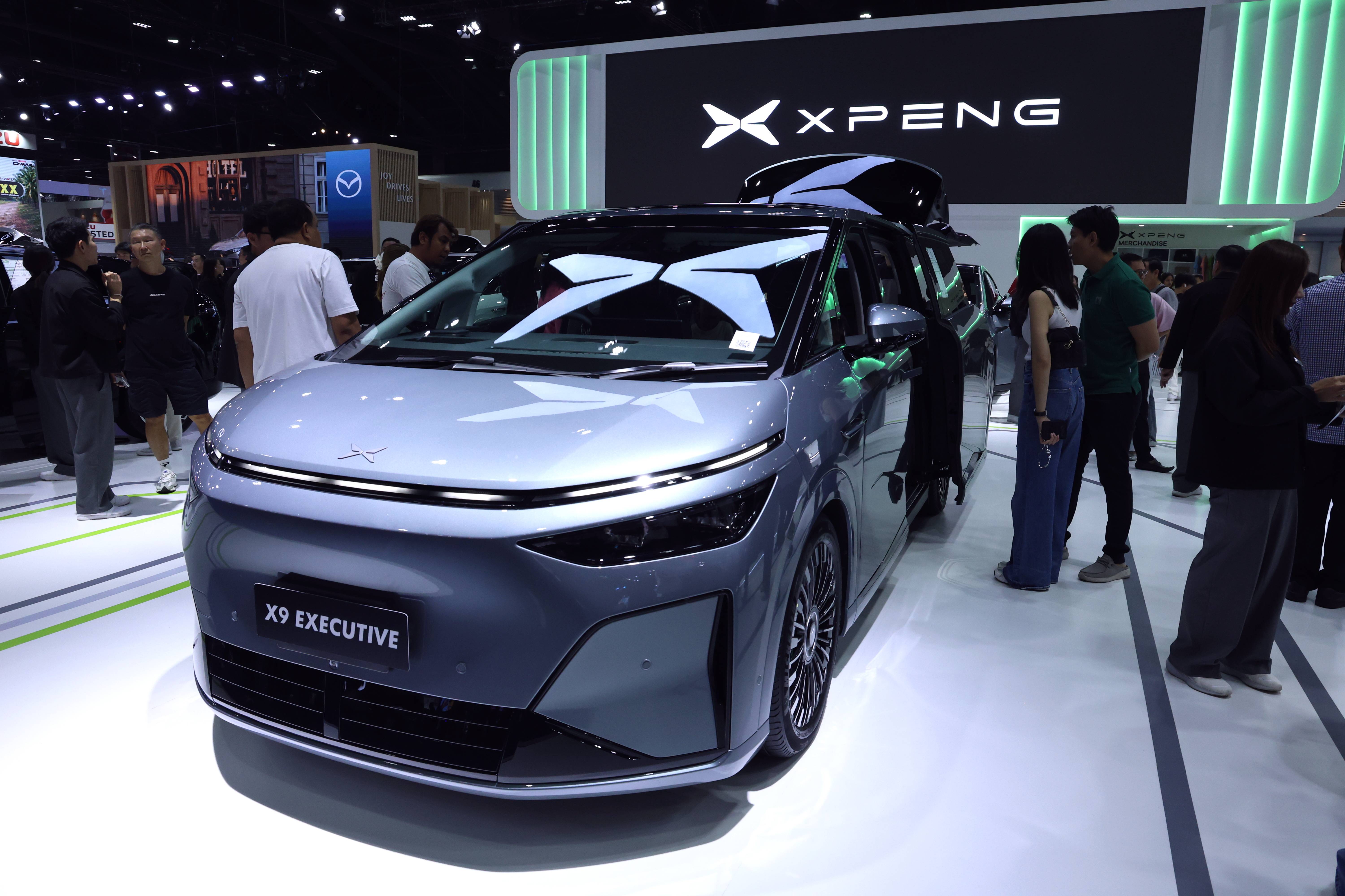 这是3月26日在泰国(guo)曼谷国(guo)际车展上拍摄的小鹏X9电动车。 新华社记者 孙玮彤 摄