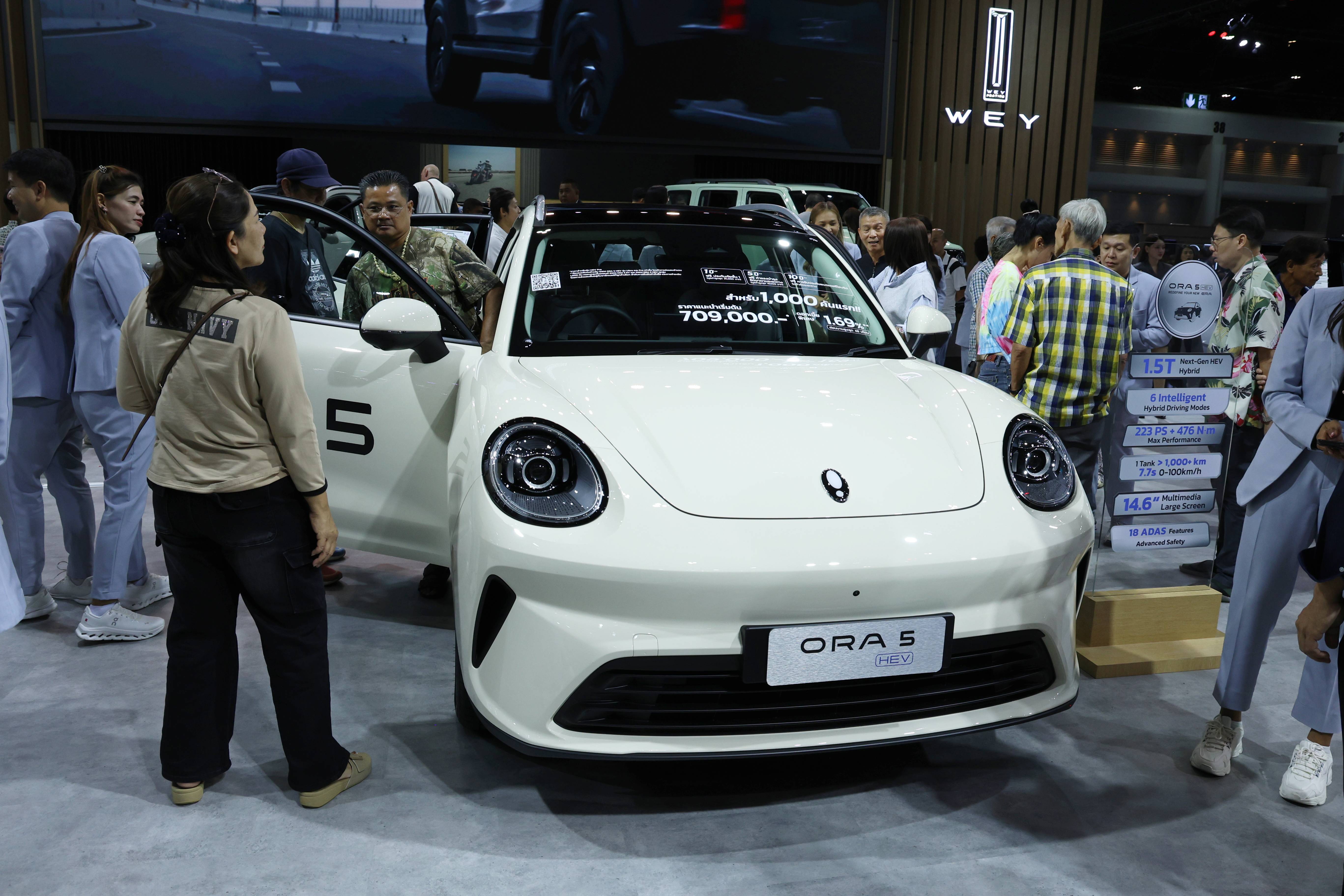 这是3月26日在泰国(guo)曼谷国(guo)际车展上拍摄的欧拉电动车。 新华社记者 孙玮彤 摄