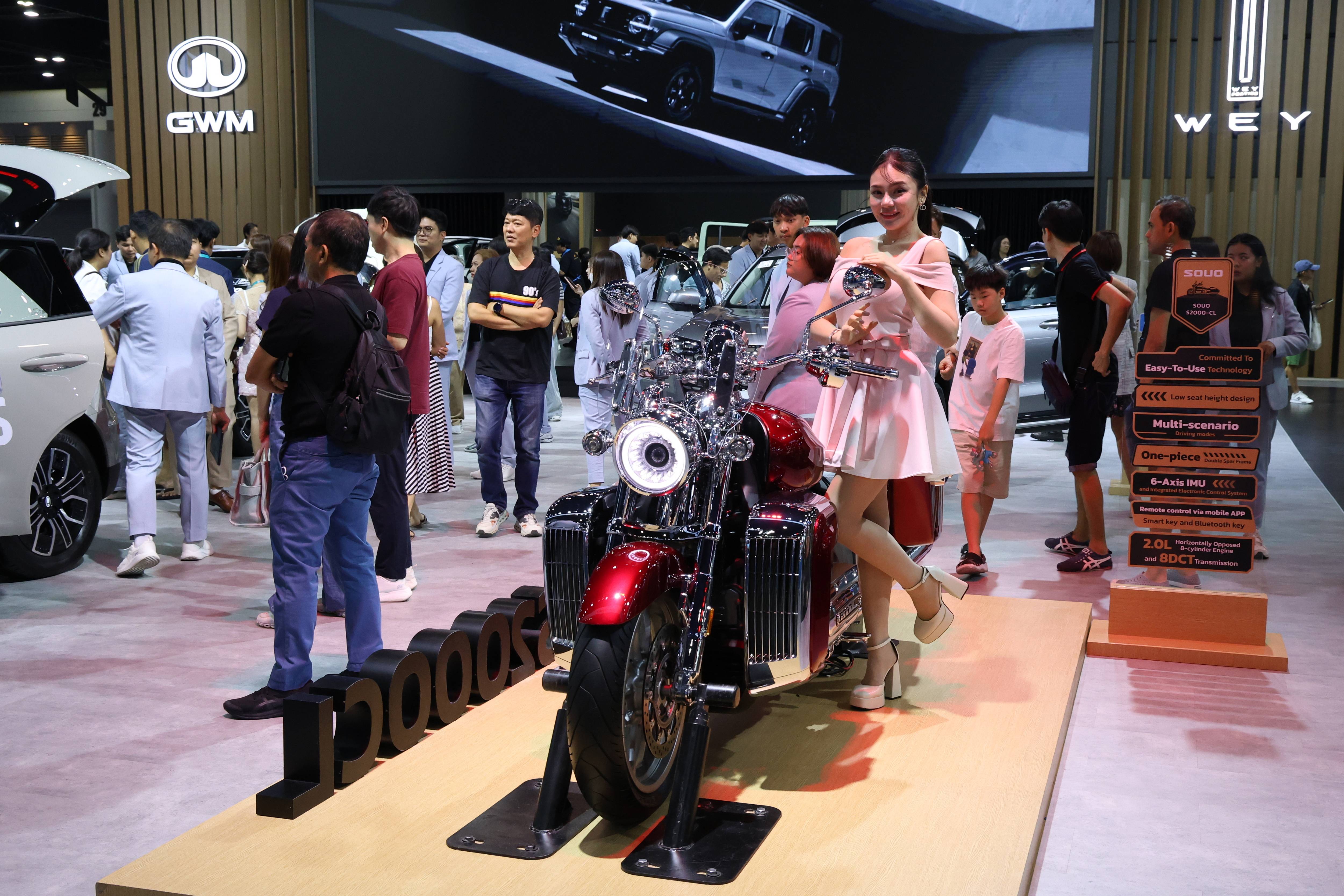 这是3月26日在泰国(guo)曼谷国(guo)际车展上拍摄的长城灵魂S2000CL摩(mo)托车。 新华社记者 孙玮彤 摄