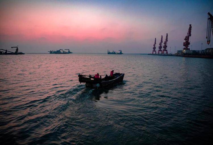 江苏省如东县长(chang)沙镇的渔民(min)赶往30海里外的作业(ye)船上捕捞鳗鱼苗(miao)。