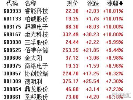 存储芯片(pian)股活泼,睿能科技、柏诚股份、超颖电子、炬光科技、三(san)孚股份等(deng)涨(zhang)停,佰维(wei)存储、金太阳、商络电子等(deng)跟涨(zhang)。