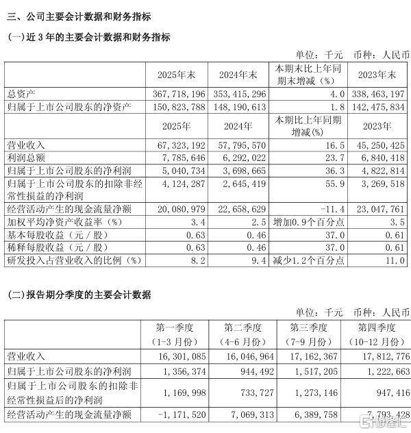 研发投入上,2025年公司研发投入合计约77.36亿元,同比增加1.1%,占销售支出比例为8.3%,较上年淘汰1.2个百分点。