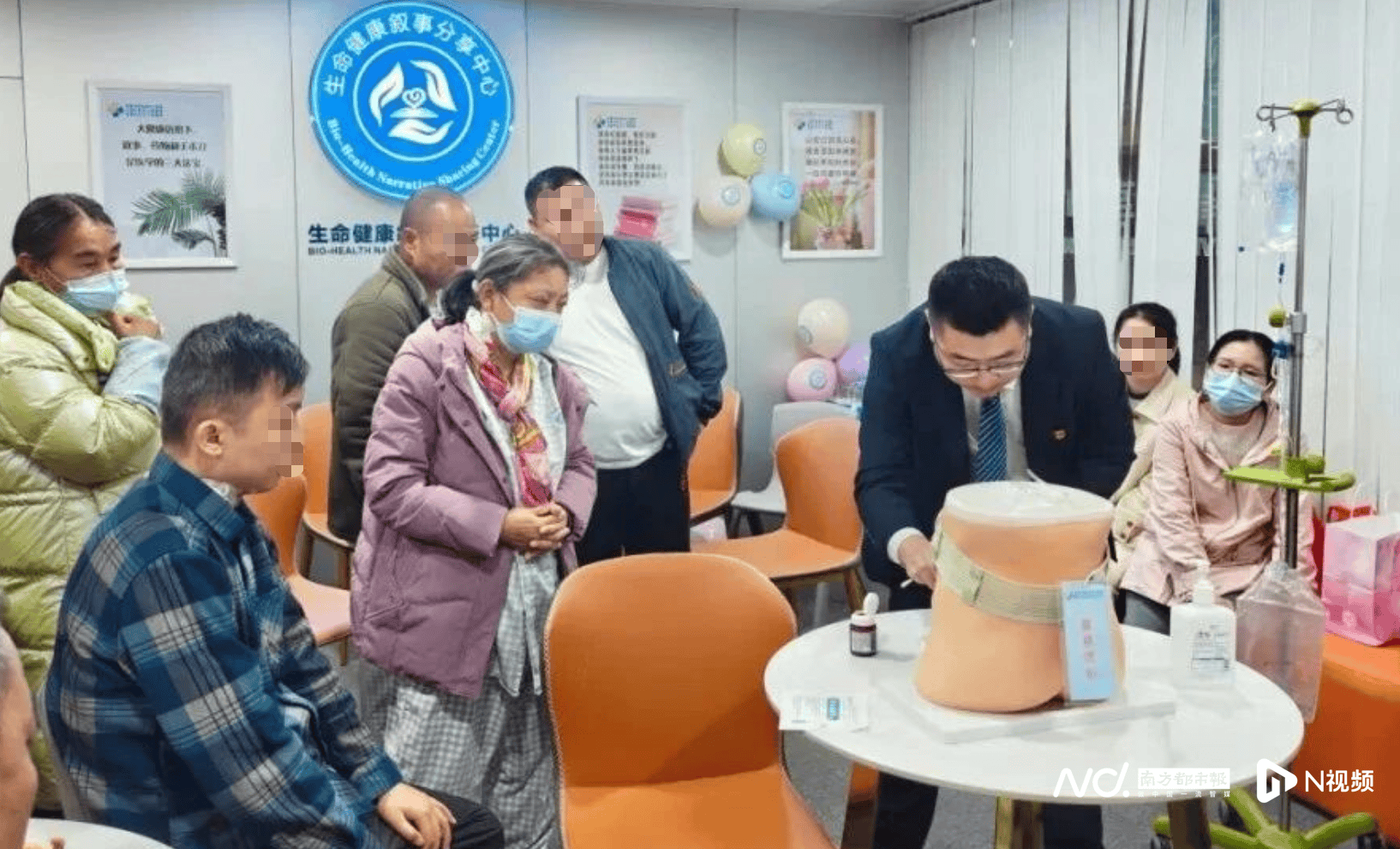 东(dong)莞(guan)市滨海湾中心(xin)病院举办的血液透析肾友会及腹膜透析叙事肾友会上,钟汉平向肾友们演示腹膜透析导管口(kou)的护理技巧(qiao)。