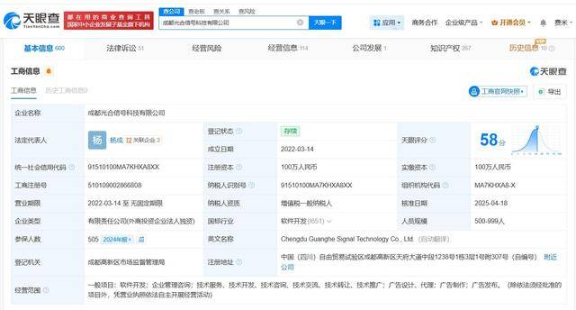 成都(dou)光合旌旗(qi)灯(deng)号(hao)科技有限公司成立于2022年3月,法定代表人为杨成,注册资本100万群众币,经营范围包含软件开发、企(qi)业管理咨询(xun)、广告建造等,由(you)北京字(zi)跳网络技术有限公司全资持股。