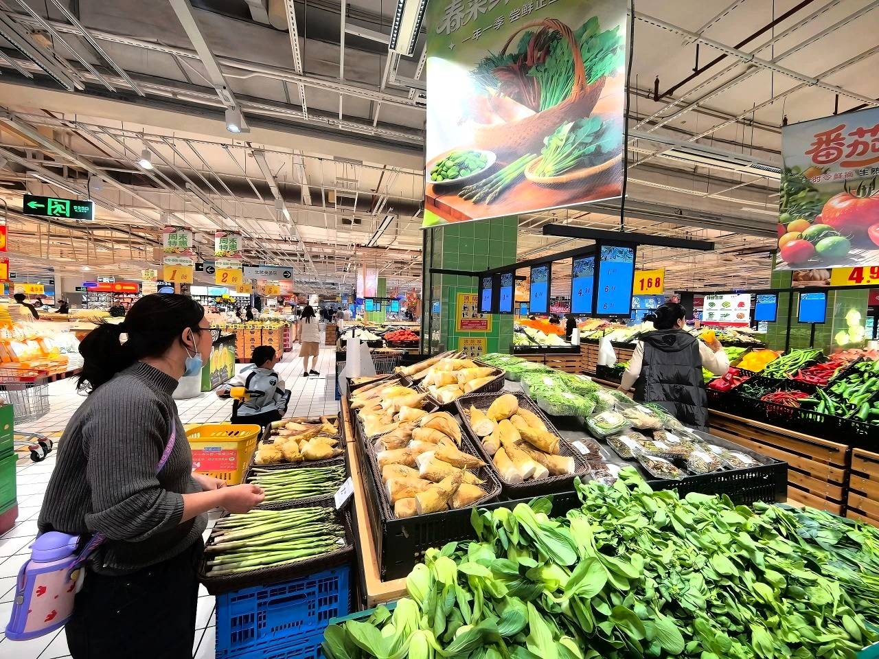 厦门市民正在一家商超选购春菜。新(xin)华社发(吴佳 摄)